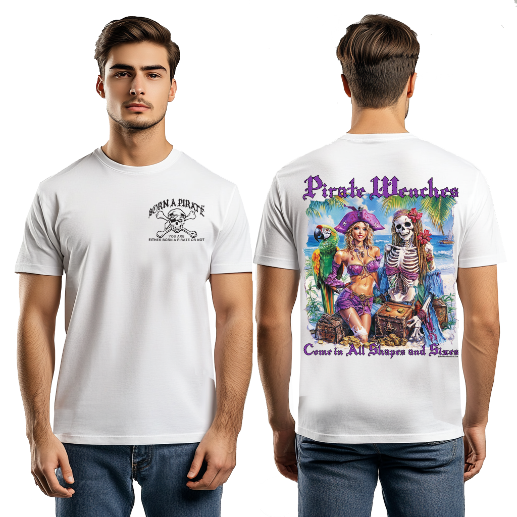 This exclusive T-Shirt features a pair of Pirate Wenches, and it’s true, they do come in all shapes and sizes. Oh, the life of a Pirate!