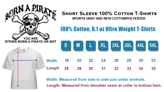 If you are looking for Pirate T-Shirts, check out our line of “Born A Pirate” tees! These t-shirts feature great original copyrighted artwork/graphics by our talented in-house artists. These designs are new, and exclusive to our brand, and not made from boring clip art. The quality and printing is on another Level!